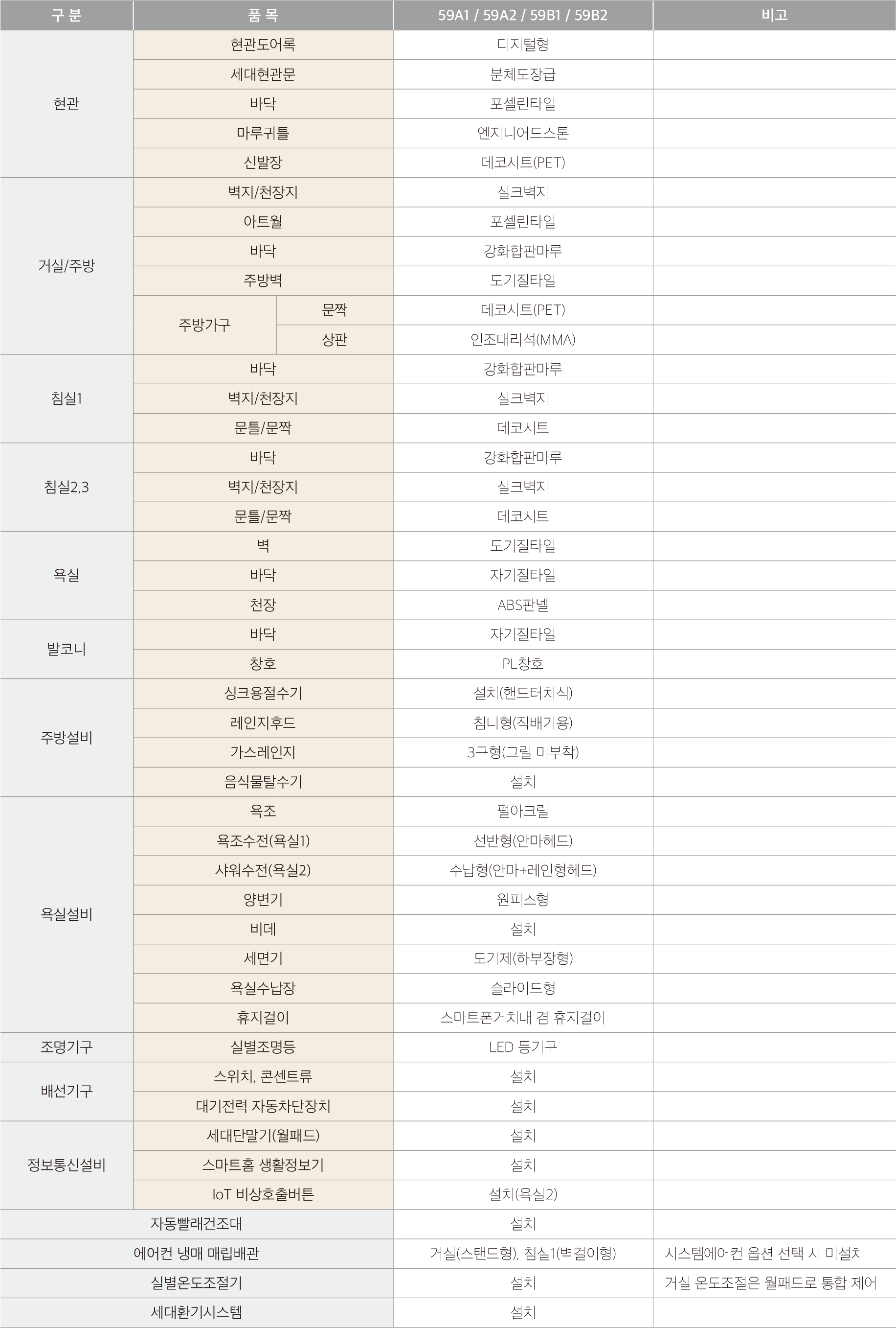 ※ 상기 마감재는 기본제공 품목이며, 옵션 선택 시 선택품목으로 대체 시공됩니다.